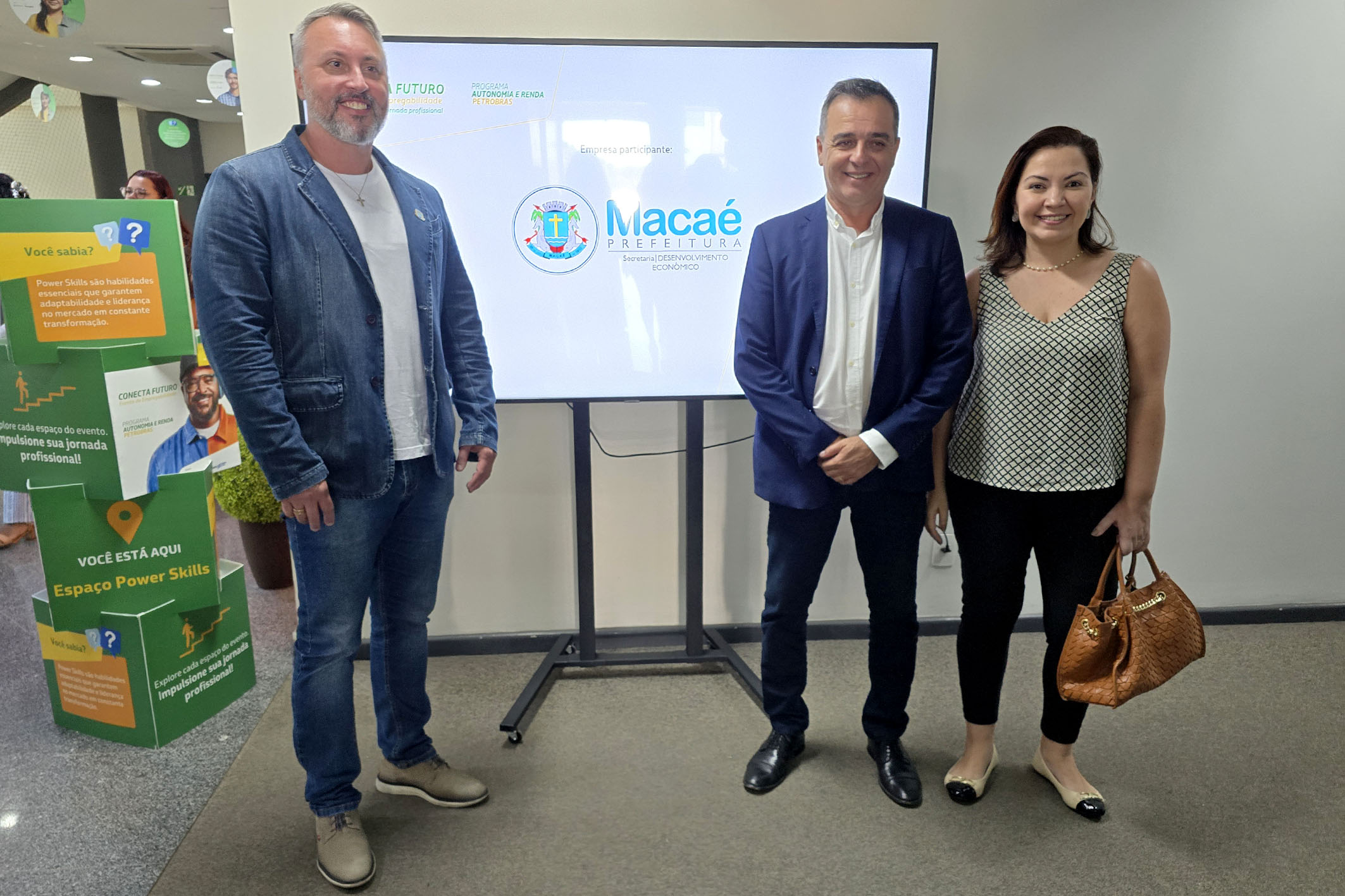 “Em Macaé a administração pública municipal está criando uma trajetória para que todos tenham oportunidade. Esse evento possibilita adquirir ainda mais conhecimento, com mentoria e acompanhamento, para que cheguem ao melhor resultado”, disse o Secretário Municipal de Desenvolvimento Econômico, Rodrigo Vianna, acompanhado da chefe de gabinete da Secretaria, Mariana Previtalli, e do coordenador de Indústria, Comércio e Serviços da Secretaria, Alessandro Barros.